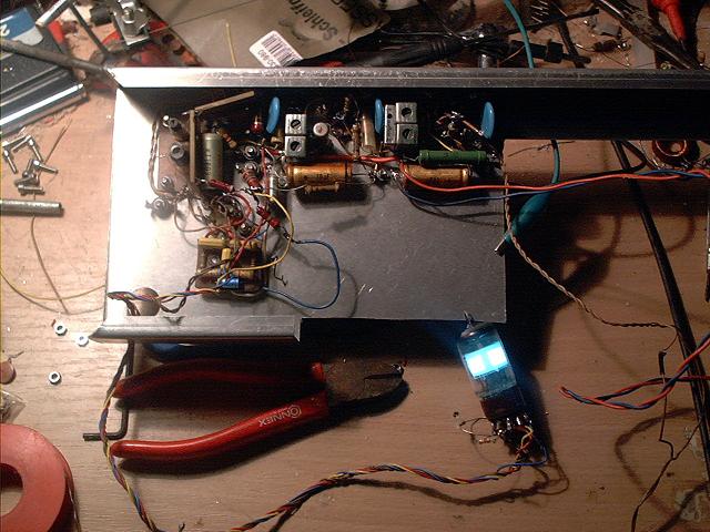 hallo Rainer, ja da kommen Glasscheibchen drüber, und unten die Abstimmkurbel, es wird dicht. Das Bastelradio gehört zu den typischen Röhrenradios, also Freischwinger mit gelochter Rückwand. Somit ist es offen gebaut, mit Problemen rechne ich da nicht.. Die hohe Anzahl Röhren kommt übrigends daher daß es bis auf eine ECC nur Einzelsysteme hat, 7pin Röhren.