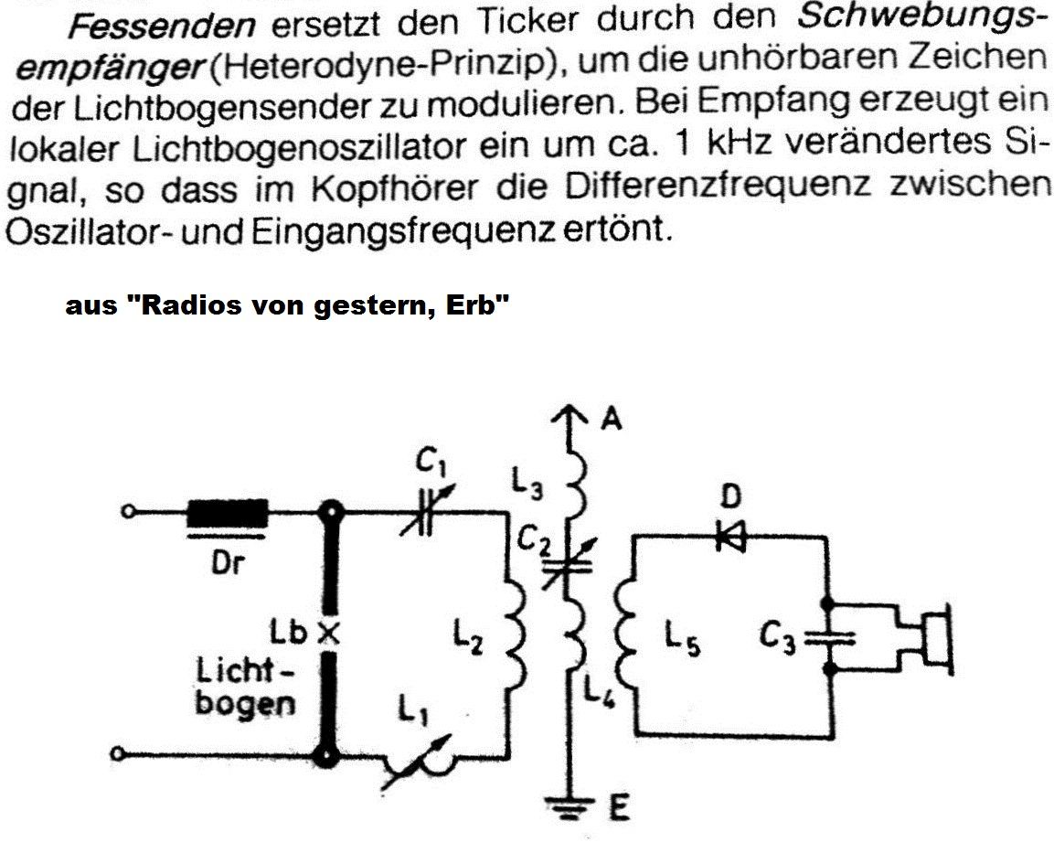 Vielleicht habe ich das immer noch nicht richtig verstanden aber wenn ich nicht komplett falsch liege, ist es doch so: Koppelt man zwei Frequenzen über einen Schwingkreis miteinander, addieren sie sich und die nachfolgende Röhre, bzw. Transistor(en) oder Diode(en), erzeugt daraus ein Frequenzgemisch aus Summen- und Differenzsignalen. Es findet additive Mischung statt. Speist man die zweite Frequenz direkt in den zweiten Pol eines Mischers, ist die Mischung multiplikativ. In jedem Fall handelt es sich bei den oben erwähnten Schaltungen um Direktmischer. Anzahl und Pegel der unerwünschten Mischprodukte hängt natürlich von den Pegeln der beiden Frequenzen ab aber sie entstehen in jedem Fall. Der Effekt mit dem Audion plus zusätzlichem Oszillator besteht nach meinem Verständnis lediglich darin, daß der Schwingkreis entdämpft- und somit sehr selektiv ist und darin, daß die Frequenzverstimmung für A1 Empfang wegfällt, sodaß die Empfindlichkeit maximal genutzt wird. Ob die Mischung additiv oder multiplikativ erfolgt, hat auf die Funktion wenig Einfluß.