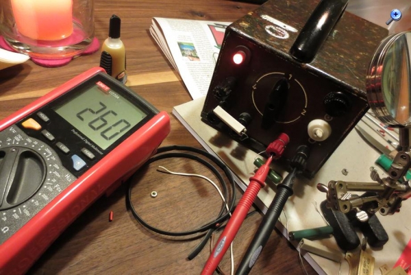 ich habe eine zugängliche Drahtbrücke eingebaut, die kann ich bei Bedarf noch auslöten. Dann ist alles getrennt. Diese Flexibilität kann von Vorteil sein, da das Netzteil für alle möglichen Versuche genutzt werden soll. Der erste Schritt ist getan. Den Wahlschalter habe ich heute noch schnell umverdrahtet. Nun stimmt die Reihenfolge 18, 30, 130, 260VDC. Stufe 1-4.