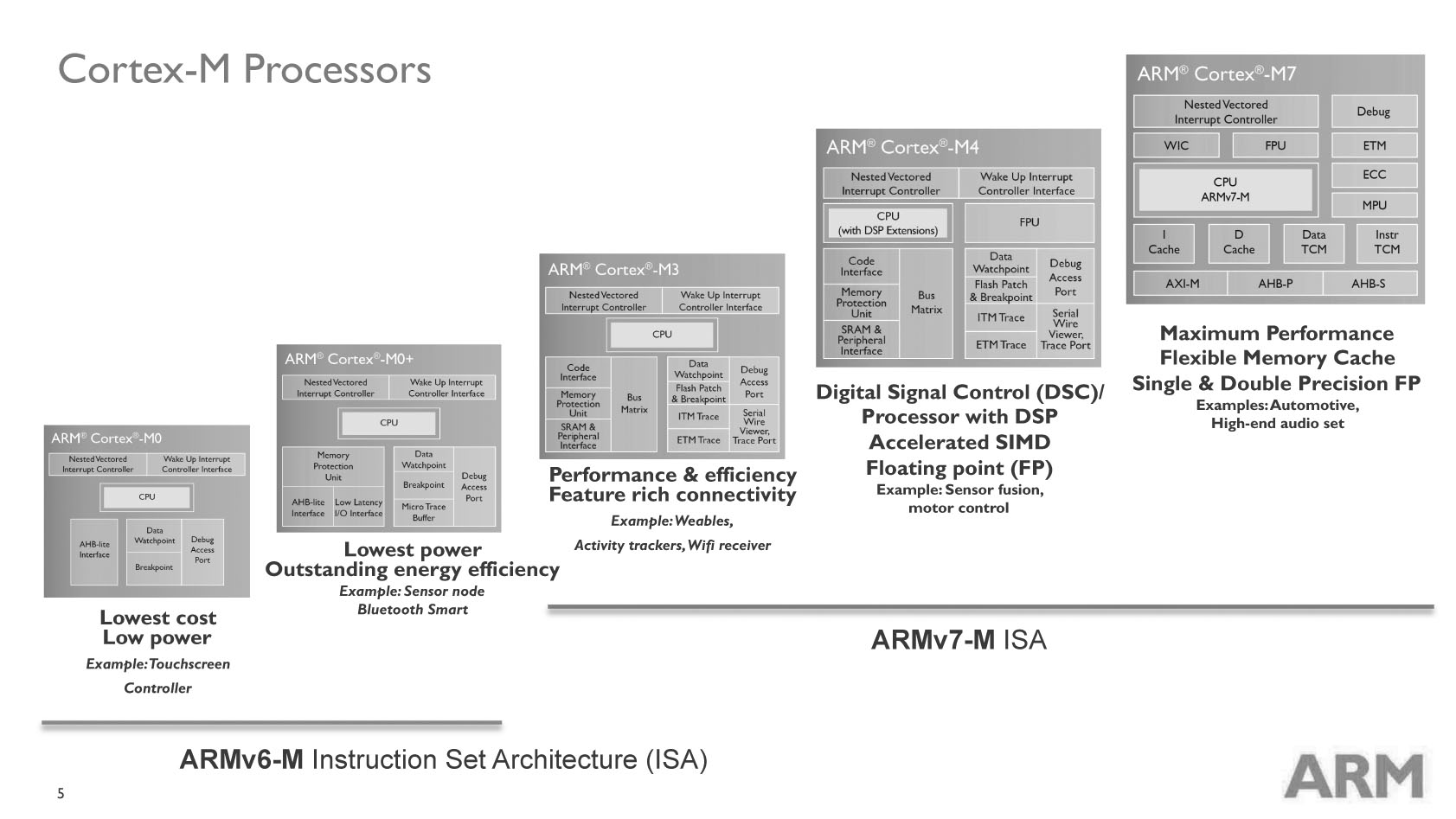 Um die Leistungsfähigkeit der Cortex-M3 Klasse besser einordnen zu können, hier noch eine Übersicht zu den Prozessoren der Cortex-Familie.
