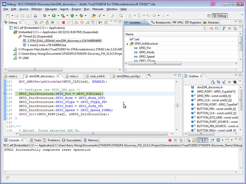 Complete support for STM32 microcontrollers, STM32 Nucleo boards as well as STM32Cube software libraries. GCC C/C++ compiler. GDB-based debugger. Simplified Eclipse IDE. ST-Link support. Multi-language support: English, Chinese.