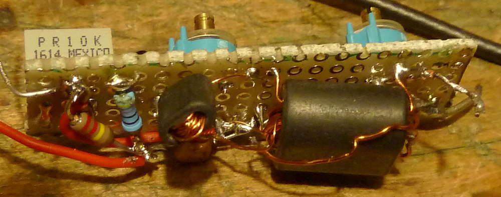 Für die Spulen wurden K1-Doppellochkerne verwendet, die haben eine sehr hohe Güte. Als Konsequenz braucht es für den Abgleich Trimmkondensatoren. Dieses Teil kommt als Ersatz für den ursprünglichen Ratiodetektor neben das AM-Filter.
