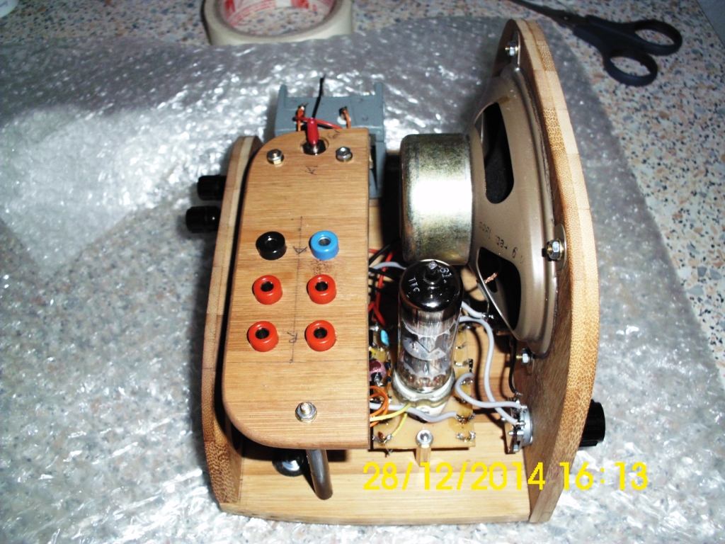 ich bin schon auch ein paar Schnittchen, mit meinem Projekt, nach Vorne gekommen. Ich wollte unbedingt das Radio noch bis zu Ende 2014 fertig kriegen, weil im Jahr 2014 war grade das Jubiläum. Genau vor 100 Jahre hat Armstrong das Prinzip von Rückkopplung in Empfänger entdeckt und erste Audion gebaut. Am 30 Dezember war ich auch fertig. Bei erstem Einschaltung hat das Radio schon funktioniert. Bei Audions (Regen) ist das üblich. Ich war glücklich. Aber das wird noch ein langer Weg bis das Radio wird so funktionieren, wie ich stelle mir das vor. So sieht das momentan aus: