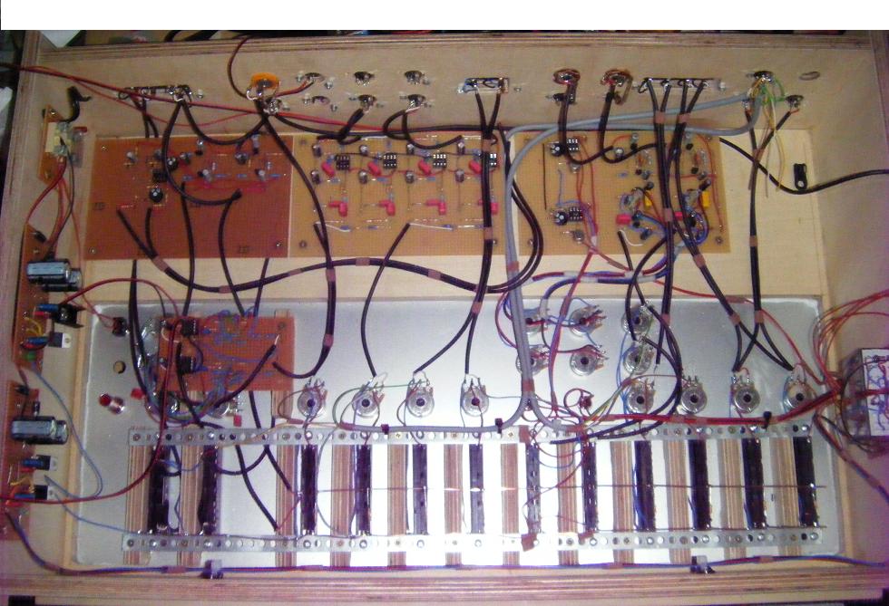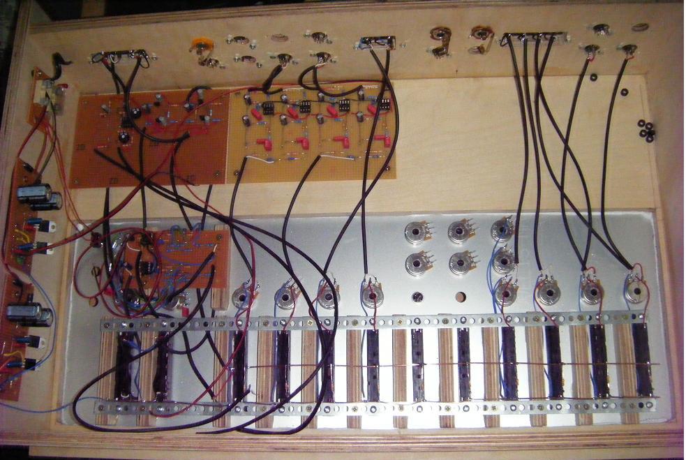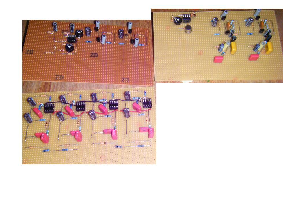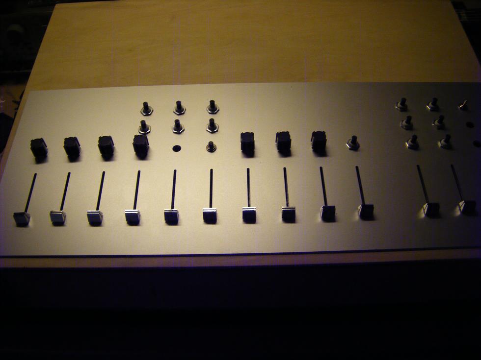 Der Signal Weg für Line Signale ist zuerst rein passiv, vom Eingang geht das Signal auf Drehpotis zur Vorpegeleinstellung und danach auf die Flachbahnregler. Für die magnetelektrischen Tonabnehmer sind RIAA Entzerrer Vorverstärker eigenbaut, für die Mikros Vorverstärker mit Höhen / Tiefen Klangreglern.