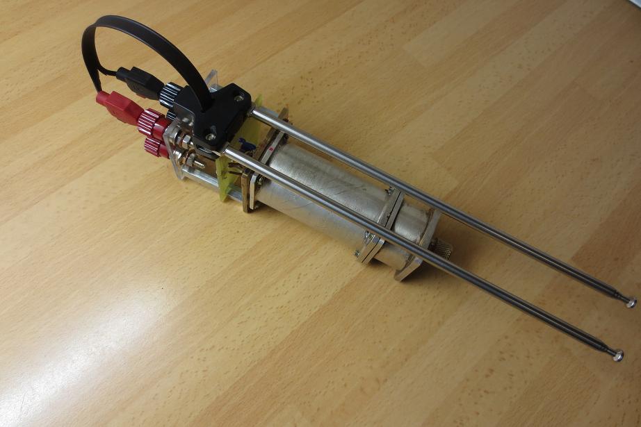 da die Empfangsergebnisse mit dem offenen Dipol sehr gut sind (siehe Empfangsbericht oben), habe ich den Dipol direkt am Resonator befestigt. Nun ist das Gerät komplett und ich werde es so lassen. Ohne viel Aufwand, nur der Hörer ist einzustecken, kann man damit wandern gehen und dass Gerät passt mit seinen 27x5x5cm Gesamtgröße gut in jede Tasche. Übrigens hatte ich das letzte Signal an der Hörschwelle auf ca. 16km Entfernung. (88.8 RBB) Das Interessante ist, dass man durch die einfache Handhabung und damit schnelle Ortswechsel, die Eigenheiten des UKW- Detektorempfangs gut ausloten kann. Das hat wohl was von Fuchsjagd... na..nicht ganz. Schon auf wenige Meter verändert sich die Empfangsituation. Dabei spielt die Höhe über Grund nicht die immer entscheidene Größe. Hier maximal begrenzt auf Körpergröße mit ausgestrecktem Arm.