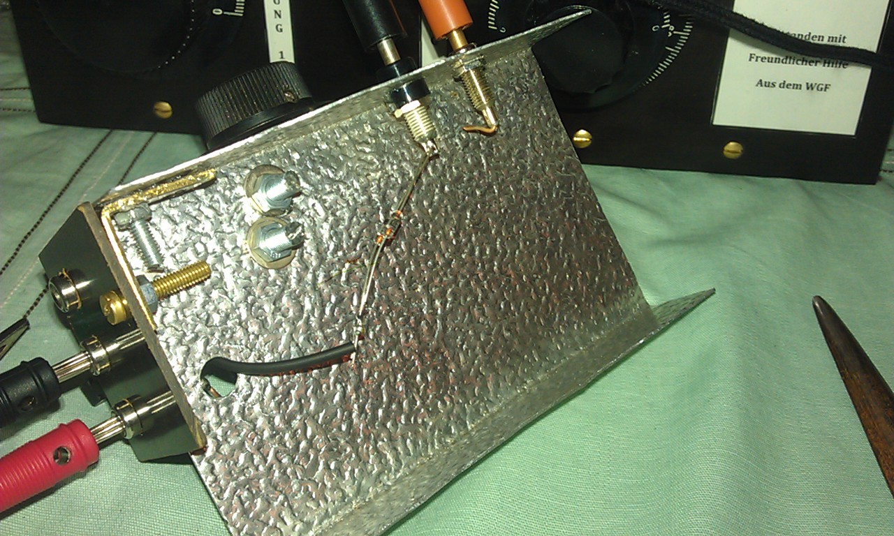 Aber mich hat es trotzdem in den Fingern gejuckt und so habe ich was aus Resten gebaut. Das Blech hatte ich mal falsch zugeschnitten, der andere Klumpatsch lag in Kisten und auf der Werkbank. Die Dioden sind GA 101 von Tungsram. Aber seht selbst: