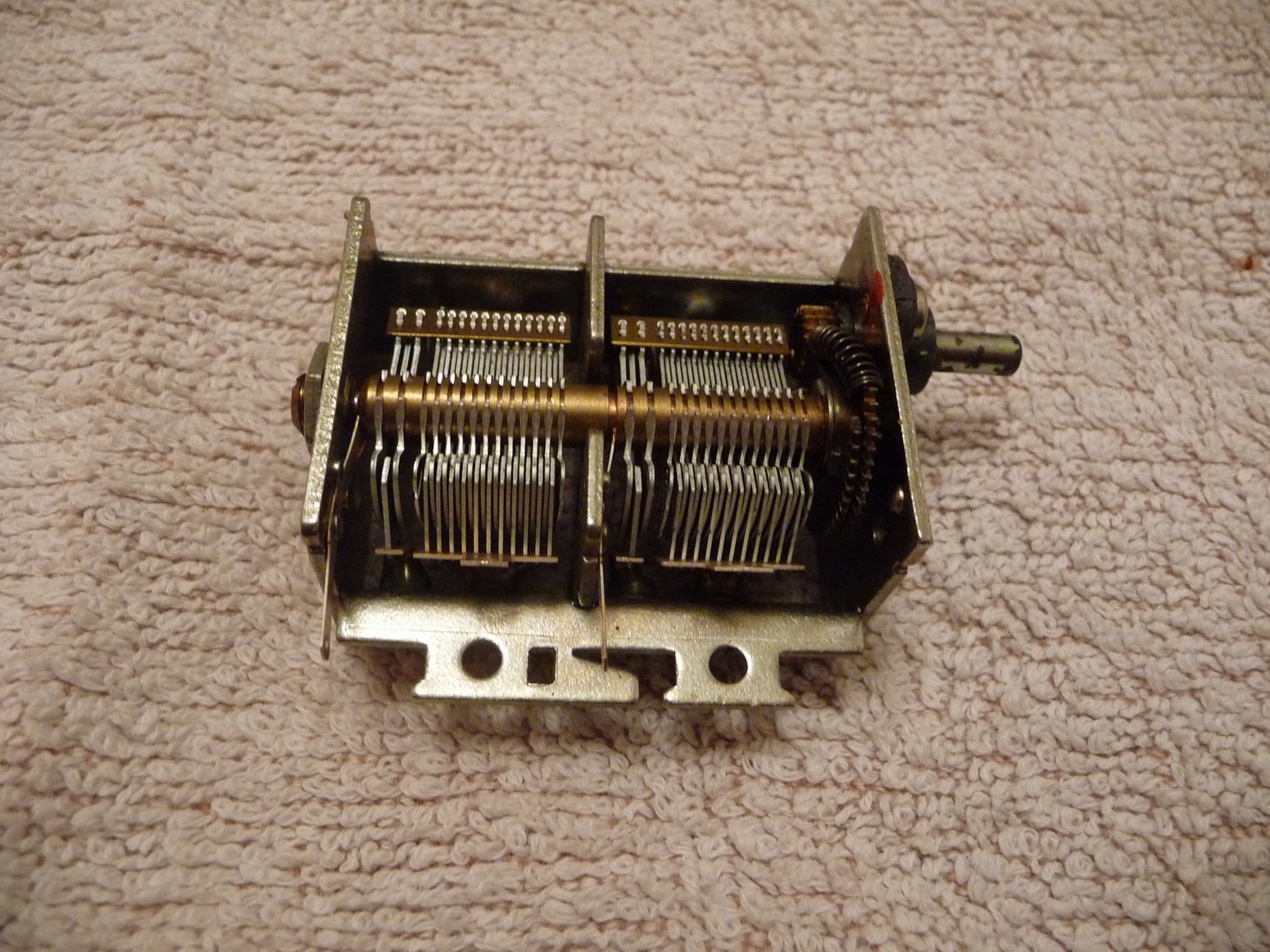 Der Drehkondensator ist ein 2x330/12 pF von RFT, war damals ja nichts schlechtes... Für Mittelwelle werden beide Pakete parallel geschaltet, für Kurzwelle wird nur eins benutzt. Die 12 pF bleiben natürlich frei...
