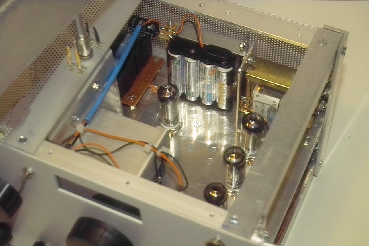 Die Stromversorgung erfolgt für die Heizung und das Display über Akkus (2x Baby parallel und 8x AA) und für die Anodenspannung über einen Batteriesatz (50x AA). Ladeanschlüsse sind auf der Rückseite, so dass die Akkus bei Ladung im Gerät bleiben können. Zur Kontrolle der Anodenbatterie gibt es eine weitere Buchse. Die Anodenstromaufnahme ist bei reinem Kopfhörerbetrieb so gering, dass die Batterien für einige 100 Stunden Betrieb reichen dürften. Allerdings sorgen die insgesamt 60 Zellen für ein sattes Gewicht Die Empfangsleistung ist zufrieden stellend, erreicht aber nicht ganz die des Netz-2-Kreisers.
