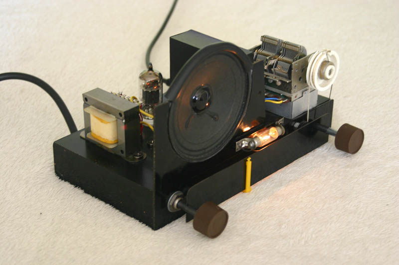 Wie man erkennt ist noch nicht alles in Röhrentechnik umgesetzt. Die ZF Verstärkung und die Demodulation läuft mit alten russischen Miniaturröhren (1Sh18)und Kermakov Miniaturfiltern. Diese sind im mittleren Gehäuse untergebracht. Leider waren keine Miniaturröhren für den NF Verstärker mehr da, hier musste auf normale Bauform zurückgegriffen werden. Den Tuner hatte ich bewusst als Fertiggerät von RFT gewählt, nicht ohne mein Fett im Nachhinein wegzubekommen. Hier wurde demonstrativ darauf bestanden, ein Zitat: "Wenn ich in drei Wochen mit Mama und Papa aus Italien zurück bin, hast du eine Lösung Opa. Entweder einen Tuner als Bausatz mit Röhren oder einen fertigen Röhrentuner und ich will ein Bakelitgehäuse dafür, ich habe mir solche Mühe gegeben, versaue mein Radio nicht!"