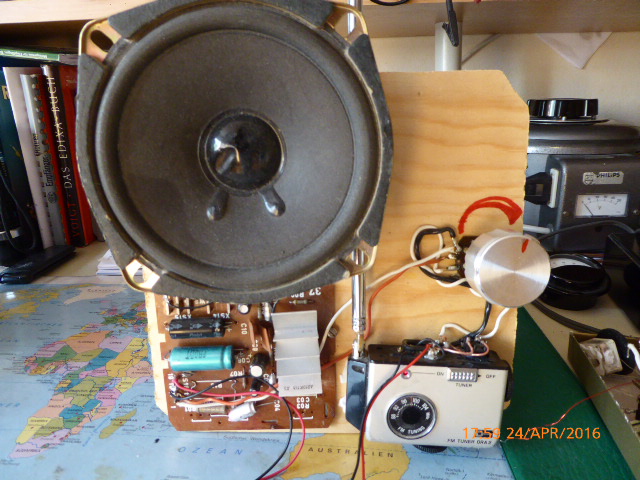 Flohmarktfund. Das musste mal zu einem System gehört haben. Jedenfalls musste die Belegung herausgefunden werden. Ein Fertig NF Verstärker und fertig ist ein FM Radio (Zum an die Wand hängen....)
