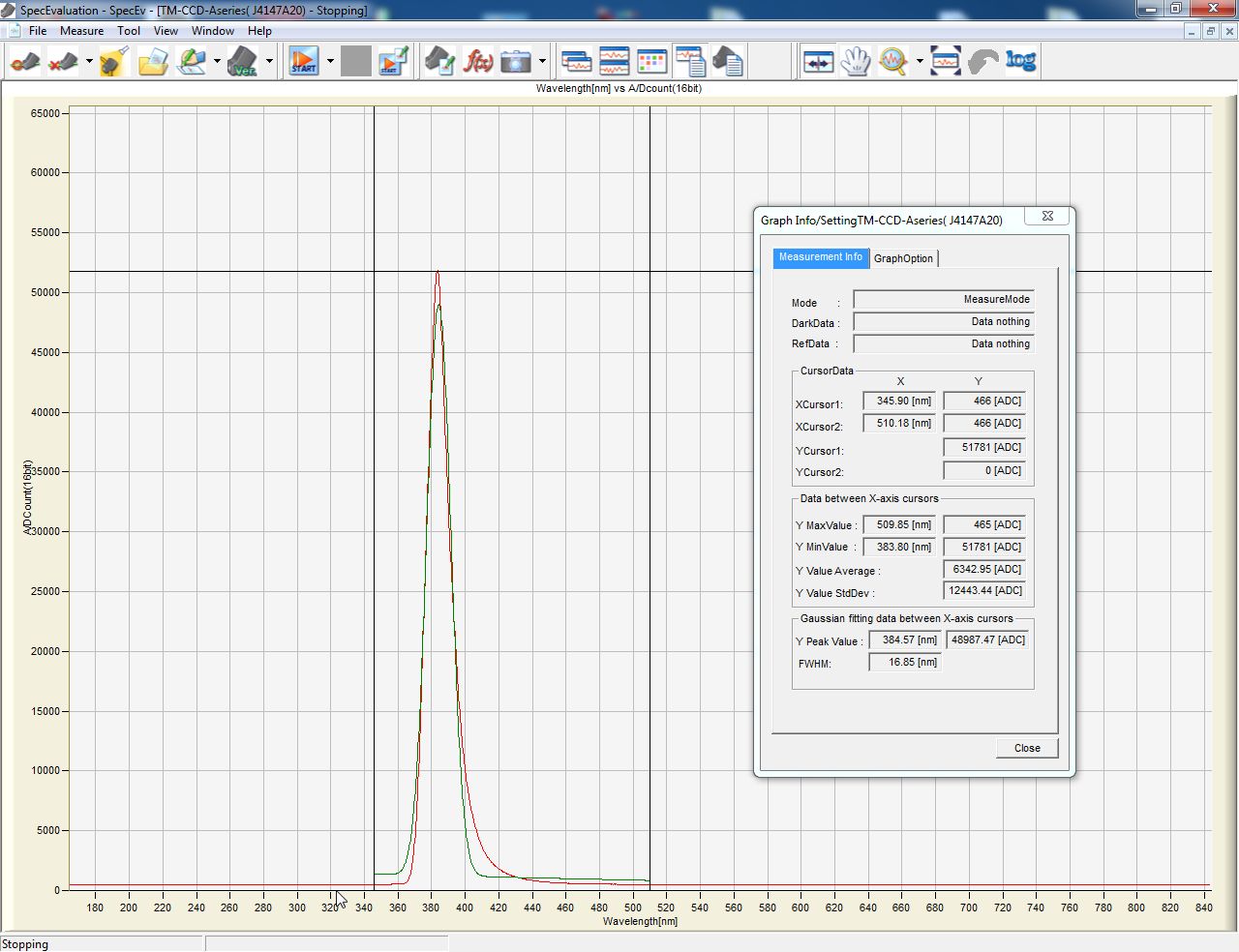 das ist ein interessantes Thema. Ich habe noch eine alte Ätzmaschine von ISEL und wollte sie vor einiger Zeit mal wieder in Betrieb nehmen, jedoch war der Photolack schon sehr alt und 'körnig'. Auch mit der Berlichtung hatte ich keinen Erfolg und so stellte ich alles wieder beiseite. Was mich interessieren würde, das ist der 'effektivste', sowie der 'wirksame' Wellenlängenbereich für den Photolack. HB9 sprach ja den UVA-Bereich an (UV-C= 100nm...280nm, UV-B= 280nm...315nm, UV-A= 315nm...380nm). Hier könnte man dann die sehr lichtstarken UV-LEDs nehmen, die zum aushärten von UV-Kleber verwendet werden. Der Wellenlängenbereich ist allerdings sehr klein und leider sind sie auch nicht billig. Ich habe hiervon mal ein Spektrum aufgenommen. Im Vergleich habe ich eine ganz gewöhnliche Fensterglasscheibe in den Strahlengang gestellt. Der Unterschied ist nicht sehr gross, wenn man bedenkt, dass ich die Lichtleistung nur auf 10% eingestellt hatte und noch ein 50% ND-Filter verwendet habe, damit der Sensor nicht in die Sättigung fährt. Eine andere Möglichkeit wäre eine Lampe, die man zum löschen von EProms verwendet. Das Problem ist hier nur eine relativ homogene Beleuchtung zu bekommen.