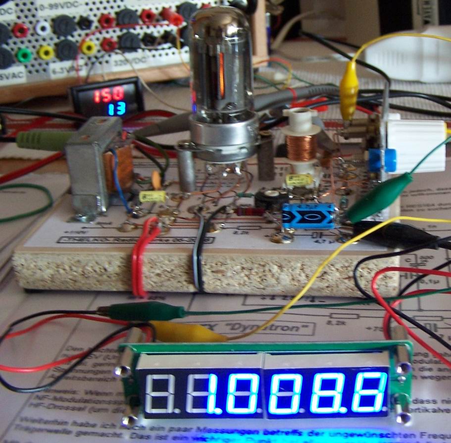 Die Frequenzen kann man direkt angeschlossen oder aber auch über irgendeine Spule anzeigen lassen. Hier am Nachbau eines K-488 mit der 12SA7.