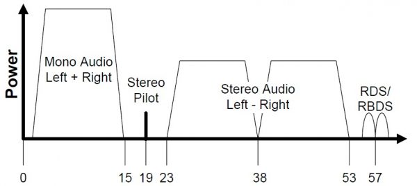 Ein typisches HD-Spektrum eines analogen UKW-Signals mit 1 bis 2 Digitalradioprogrammen (Services) sähe so aus:
