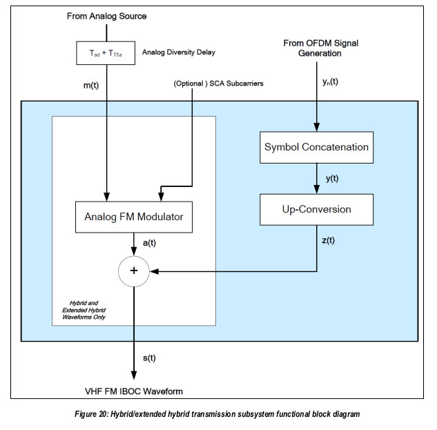 Technisch kann der alte UKW-Sender samt Antenne und Anpassungsnetzwerk wie gesagt durch eine Expander-Box von iBiquity digitaltauglich gemacht werden. Es besteht aber auch die Möglichkeit den alten Sender zu lassen wie er ist und einen kleineren reinen Digitalsender neben dem Analogsender zu betreiben und das OFDM-Signal über einen zweiten Antennenmast dem Signal der Radiostation zuzufügen. Auch der Einsatz von rein digitalen Füllsendern wäre möglich. Durch das "Aufbohren" der Seitenbänder entstehen natürlich Probleme auf den Nachbarkanälen, selbst beim Kanalraster welches in den USA genutzt wird. Aus diesem Grund hatte man am Anfang von HD-Radio auch mit unterschiedlichen Sendeleistungen der "digitalen" Seitenbänder experimentiert. Das ging von 1-2 % der Sendeleistung des analogen Trägers los, wobei die Reichweite des Digitalsignals aber stark eingeschränkt war. Bei 5-7 % war wohl nur ungefähr 1/3 der Fläche des analogen Signals zuverlässig mit HD-Radio zu versorgen.