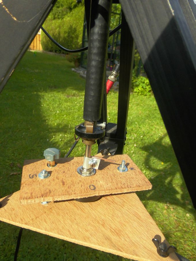 Mein schon vorgestellter Peilrahmen: link---- wurde mit einem GPS-Kompass erweitert. Damit sollte die magn. Missweisung kein Thema mehr sein. Weiterhin wurde zum besseren Auffinden des Peilminimums ein NF-Filter eingefügt. Der bereinigte 1kHz -Ton (ICF 2001D Stellung USB, Träger) wird gleichgerichtet und die gewonnene Gleichspannung auf den Vertikaleingang des Speicheroszilloskopes gegeben. Das alles steht abseits im Gartenhaus, ca. 3m von der Antenne entfernt.