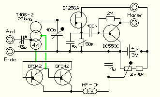 Bezugnehmend auf bisherige Experimente ist es nun gelungen, eine regelbare Enddämpfung des Schwingkreises einzustellen. Es ist möglich, die Signale bis zum Schwingeinsatz zu regeln. Schon im experimentellen Aufbau, siehe Bild, arbeitet die Schaltung im Kurzwellenbereich einwandfrei. Für Telegrafie- und Einseitenbandempfang könnte eine Feinregelung sinnvoll sein, was sich bei der Einstellung von Radiostationen als nicht nötig erwies.