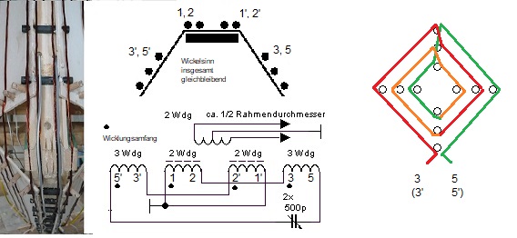 Theoretisch hat er nicht so eine gute Richtwirkung wie der Flachrahmen, weil alle Windungen insgesamt eine Windung ergeben, die anders ausgerichtet ist und daher die Nullstellen eintrübt. Für den Empfang ist das aber nebensächlich.
