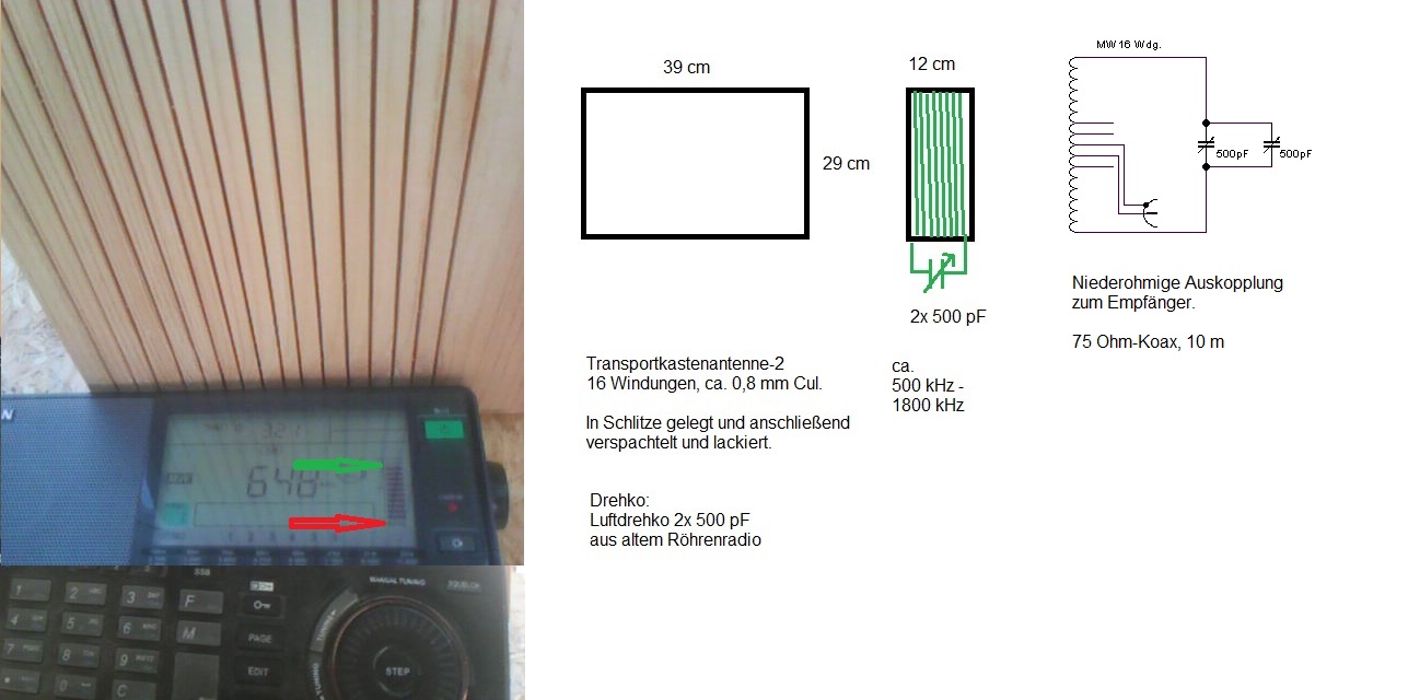Problematisch sind hier aber die Störungen im Haus, und da wurde eine Rahmenantenne gebaut, die drehbar ist und mittels Servo-Motor abstimmbar.