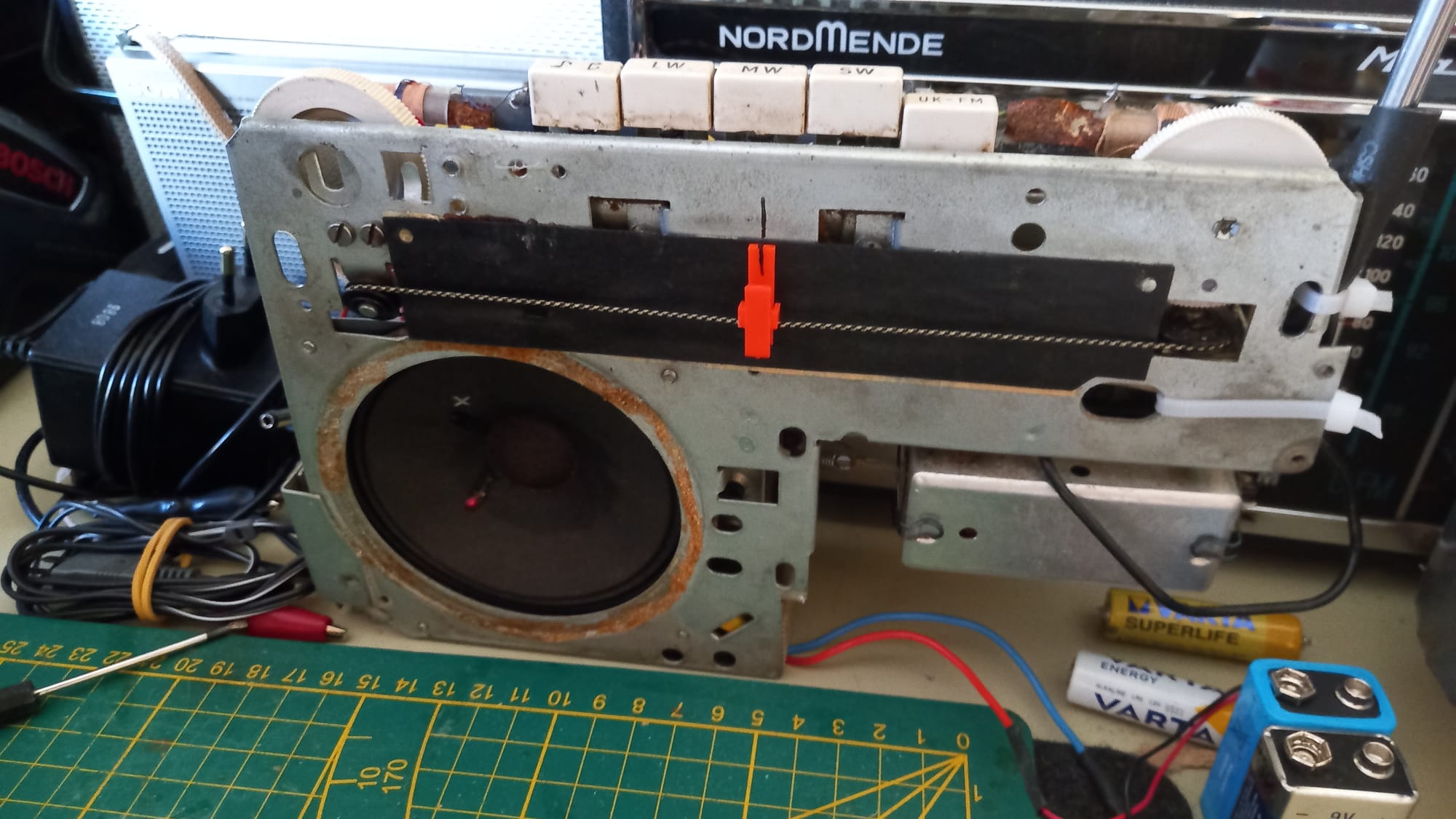 So wurde es mit allen Resten aus dem Fundus angefertigt. Eine kleine Schreinerarbeit. Ein Batteriehalter für die 2 4,5 Volt Batterien war noch in der Bastelkiste.