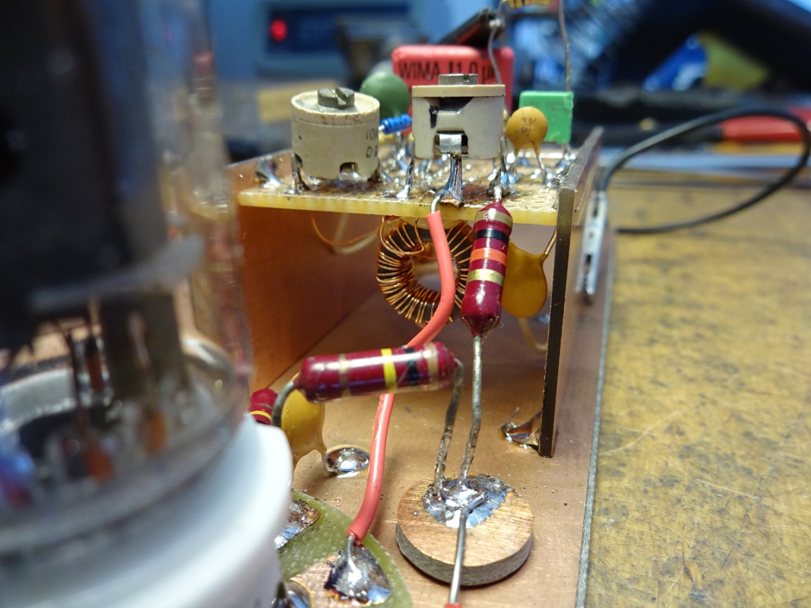 Was den Oszillator in Gitterbasisschaltung angeht, der scheint ziemlich robust zu sein: außerordentlich schwingfreudig und bei Veränderdung der Anodenspannung zwischen 220V und 120V wandert ein gerade empfangener, kräftiger Sender nicht aus der ZF-Durchlasskurve.