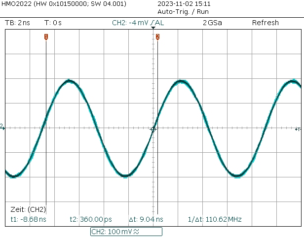Oszillatorspannung 110MHz mit Tastkopf 10:1 gemessen