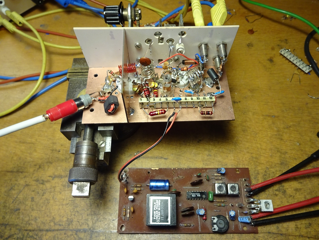 in der Zeit, in der, wie bereits geschrieben, der ZF-Verstärker auf Eis liegt, habe ich mich mit dem Mischteil des UKW-Radios beschäftigt. Den Versuchsaufbau habe ich gemäß der "bastlerfreundlichen" Vorlage des Nogoton-Einbausupers gestaltet zumal die entsprechenden Röhren bei mir vorhanden waren.