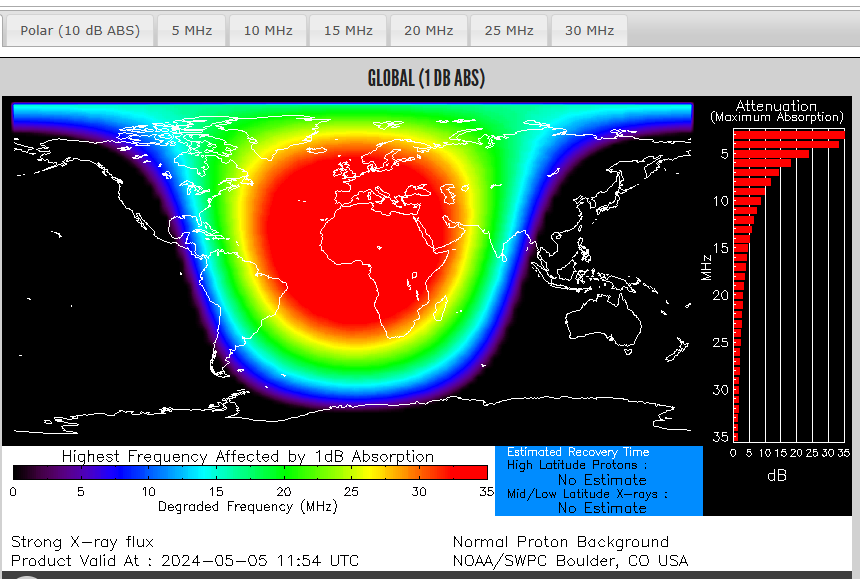 X-Flares ja, Mögel-Dellinger NEIN. Die D-Schicht spielt auch keine Rolle, eher schon die E-Schicht. Auf jeden Fall sind die Tagesfeldstärken mikrig und die 49m/41m-Reichweite auf vielleicht 300 bis 400 km eingeschränkt.