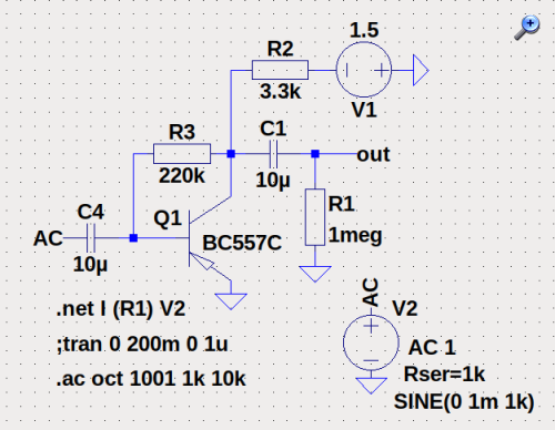 Ich vermute, daß die Idee dieser Schaltung darin besteht, eine möglichst hochohmige Ankopplung des Verstärkers an den Schwingkreis zu realisieren. Denn im Hinblick auf die Spannungsverstärkung ist eine externe Basisvorspannung erheblich vorteilhafter. Der in der Tabelle aufgeführte OC817 produzierte z.B. aus 10mV AC Spannung an der Basis, 125mV AC am Kollektor. Mit einem 220k Widerstand zwischen Kollektor und Basis waren es rund 400mV (+10dB). Der Eingangswiderstand des Verstärkers dürfte dabei jedoch deutlich gesunken sein.