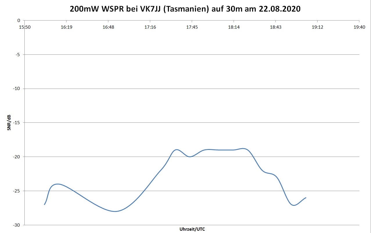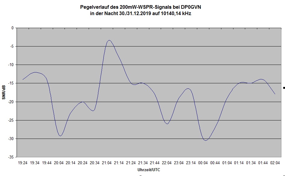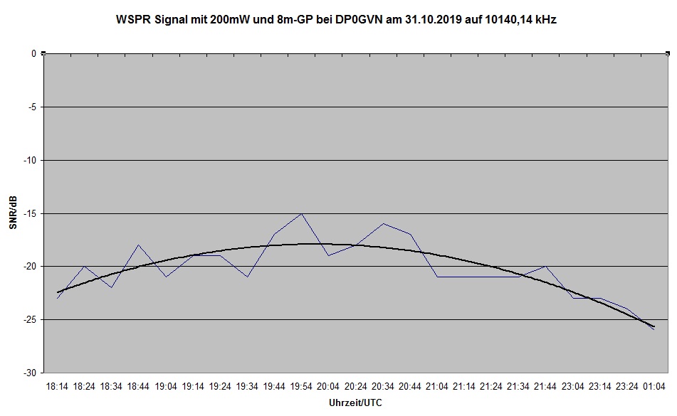 Nachtrag: DP0GVN ist die Georg-von-Neumayer Station in der Antarktis Die Hörbarkeitsgrenze eines CW-Signals im Rauschen liegt je nach Gehör bei WSPR-SNR=-5 ... -10dB Die Dipolhühnerleiter musste hier natürlich in GFK-Stäben untergebracht werden.