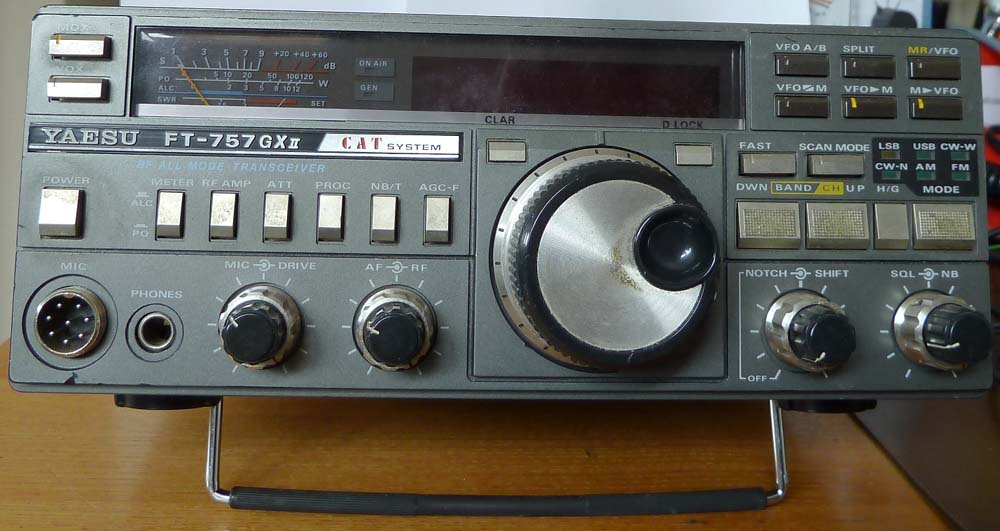 hier die Vorstellung des KW-Transceivers FT7757GX-II von Yaesu. Das Gerät wurde Ende der 80er-Jahre hergestellt und beeindruckte damals mit kompakter Bauform und 100W Sendeleistung auf allen KW-Bändern. Es gab insgesamt 4 Gerätevarianten: Die älteren Versionen FT757GX-I (100W) und FT757SX-I (10W) mit mechanischem Schalter für die Betriebsart sowie die neueren Versionen FT757GX-II (100W, hier vorgestellt) und FT757SX-II (10W) mit vollelektronischer Betriebsartwahl und Schnittstelle zur Fernsteuerung mit einem PC.