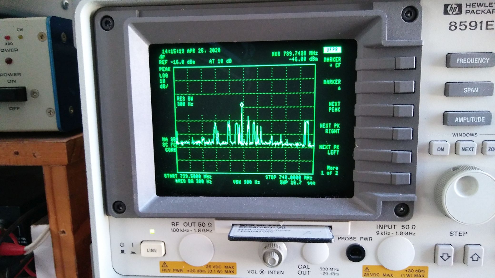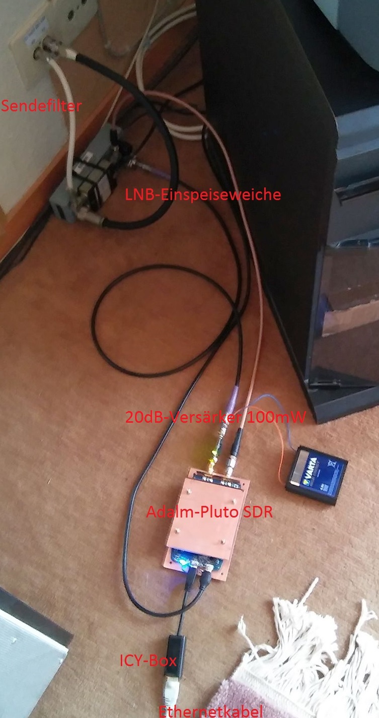 Noch einmal zur Leistung: Es wird empfohlen, 2W der Senderantenne zuzuführen. Schon bei nur wenigen Metern Koaxkabel muss man aber davon ausgehen, dass mindestens die Hälfte der Leistung auf dem Kabel verloren geht. Diese Leistung aus der CDMA-Endstufe zu beziehen ist zwar kein Problem, aber der Umbau braucht auch noch seine Zeit. Wahrscheinlich werde ich einen zweiten Adalm-Pluto an der Dummyload über ein 50dB Dämpfungsglied als Spektrumanalysator anschliessen, denn mein hp geht nicht über 2GHz hinaus.
