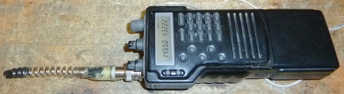 Optisch sieht man dem Gerät den Gebrauch an, es war in der Luft und auch am Boden fleissig im Einsatz, auch im Militär leistete es gute Dienste (damals waren Mobiltelefone gross und schweineteuer). Die Ummantelung der Antenne musste ich mal entfernen, weil beim Anpassnetzwerk etwas defekt war, daher ist der Wendel jetzt freigelegt. Das Anpassnetzwerk habe ich nach der Reparatur vergossen, damit es mechanisch wieder stabil ist.