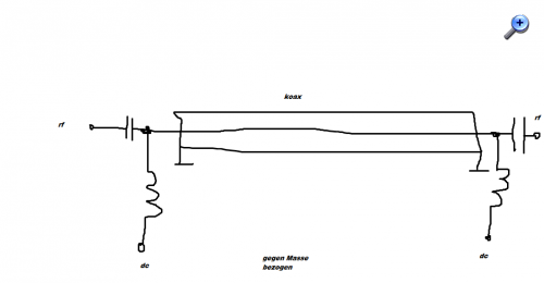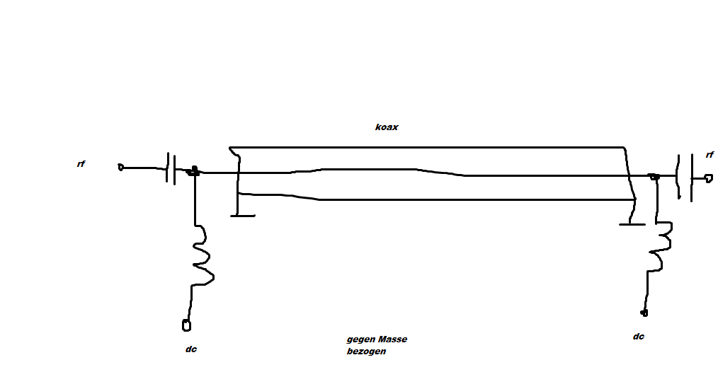 Nun ganz einfach : der Kondensator(RF) geht zum Ausgang der Antenne, die Drossel (DC)zur Betriebsspannungsversorgung der Aktivantenne und die Andere Seite (DC+RF) ans Koax - an der Empfängerseite geht das Koax an (DC+RF) , DC an die Stromversorgung und (RF) zum Empfänger.
