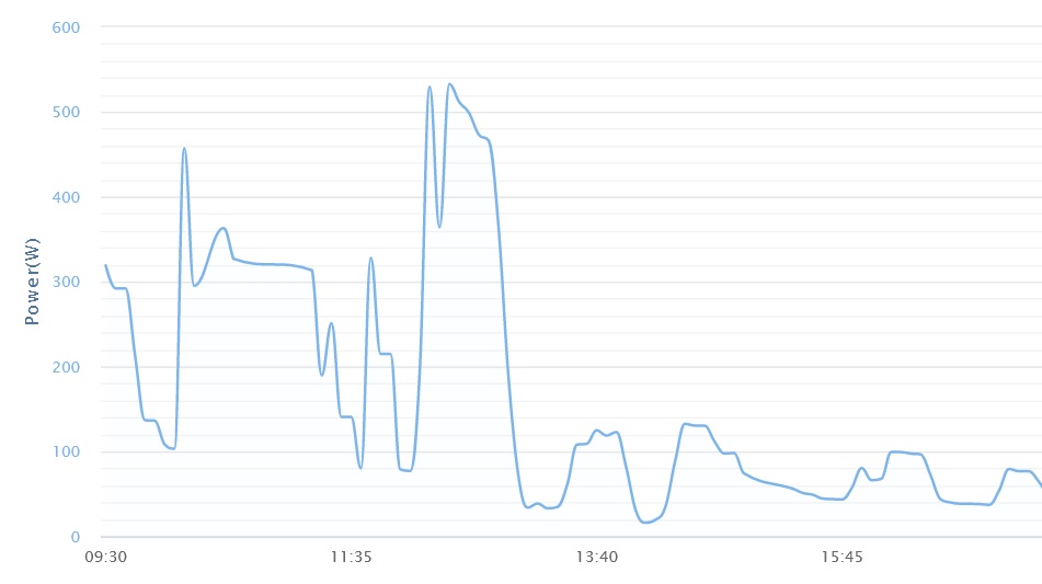 Es konnte aber ein Gerät von Growatt gefunden werden, das funktioniert und sehr störungsarm ist. Die Betriebsparameter sind 50/70V. Es soll aber nicht verschwiegen werden, dass das Modell MIC600TL-X über kein Webinterface verfügt und daher auf die chinesische Cloud angewiesen ist. Der Datenabfluss ist intransparent (jedenfalls für mich, die Portnummer behalte ich besser für mich). Welchen Risiken man sich da aussetzt, muss man sich überlegen. Grafiken folgender Art sind verzichtbar. Man kann auch in regelmässigen Abständen das OLED-Display ablesen und auf das WLAN-Modul verzichten: