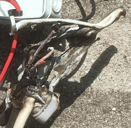 Die meisten Wandler stören nicht nur über den Netzanschluss, sondern auch auf der DC-Seite und dem WLAN-Anschluss bzw. über die dortige Antenne. Man sollte sich aus haftungsrechtlichen Gründen davor hüten, die DC-Seite aufzutrennen. Es herrschen hier bei gutem Wetter Dauerströme von bis zu 13 Ampere. Bei Kontaktproblemen kann ein Lichtbogen entstehen, der nicht abreisst. Hier habe ich eine Feuchtraumdose fotografiert, die bis auf Reste des Deckels atomisiert wurde: