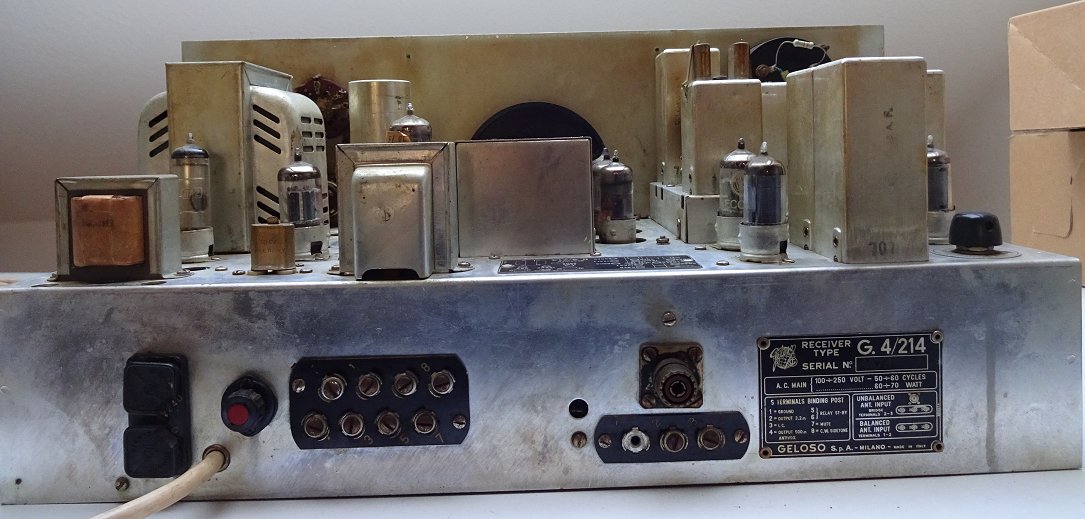 Von der Firma Geloso sind einige KW-Empfänger herausgebracht worden, allerdings mWn nur zwei Doppelsuper: G4/214 und G4/216. Mir gelingt es hoffentlich, erfolgreicher Abgleich und eine funktionierende Antenne vorausgesetzt, die alte Leistungsfähigkeit des vorliegenden Empfängers wiederherzustellen.