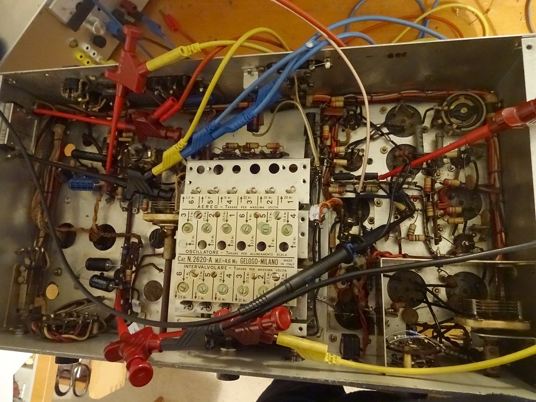vor einiger Zeit wurde in der Bucht ein Kurzwellenempfänger der Firma Geloso angeboten. Nachdem ich mir den Schaltplan angesehen und mich anhand der Fotos von der Vollständigkeit(besonders der Chassisoberseite, allerdings fehlten alle Röhrenabschirmungen und einige originale Bedienknöpfe) des Radios überzeugt hatte und der geforderte Preis moderat war gab ich ein Angebot ab. Ich erhielt den Zuschlag. Geliefert wurde allerdings kein 60 Jahre altes Radio sondern eine 60 Jahre alte Teerbombe, die wegen ihres penetranten Geruchs umgehend aus den Wohnräumen in den Keller verbracht wurde.