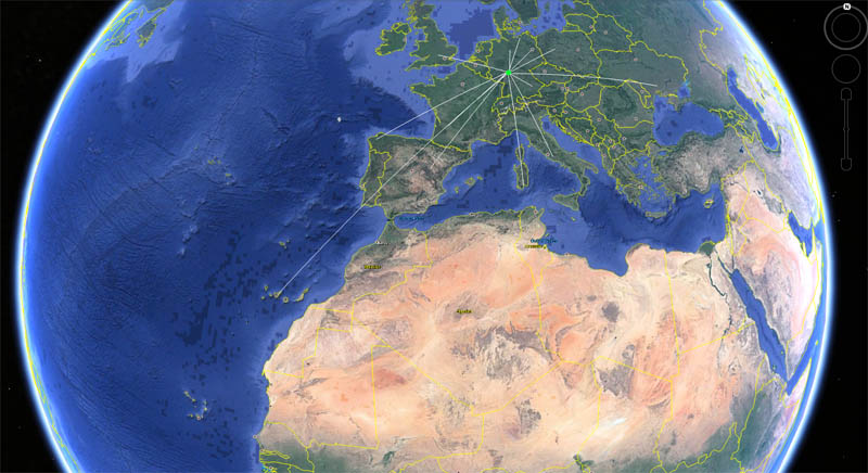 Am verlängerten Wochenende habe ich dann in loser Folge einige QSOs getastet und bin damit gut durch Europa gekommen. Die weiteste Verbindung mit knapp einem Watt gelang auf die Kanaren.