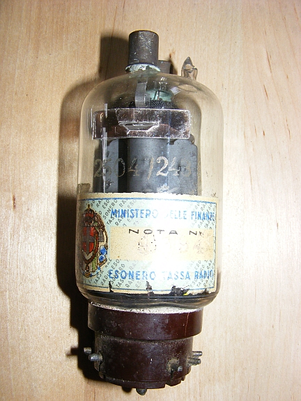 Bei meiner kleinen Röhrensammlung die ich nach einem Hauskauf auf dem Dachboden gefunden habe, ist eine Röhre dabei die mir Rätsel aufgibt. An der ganzen Röhre befinden sich keinerlei weiteren Hinweise auf Typ der Röhre als die auf den Photos abgebildeten. Eine vorsichtige Messung mit 1 V und einer Stromaufnahme von 1A , wobei die Spannung auf 0,6 V zusammenbrach, ergab einen Widerstand der Heizwendel von 0,6 Ohm. Ob das der tatsächliche Widerstand ist wage ich zu bezweifeln. Auch die sehr kurze Messung, da mir die Heizspannung unbekannt ist, mit meinem Ohmmeter ergaben 0,6 Ohm. Um welchen Röhrentyp könnte es sich handeln. Das Innere ist, ausser was abgebildet ist nicht näher einsehbar. Alle anderen Röhren die ich gefunden habe sind Wehrmachtsröhren. Ich glaube nicht, dass diese Röhre eine Ausnahme macht und keine Wehrmachtsröhre ist. Eine weitere Schöne gehört zu meinen Funden. Über diese Röhre findet man im Netz genug Infos. Aber das aufgeklebte Etikett finde ich abbildungswert.