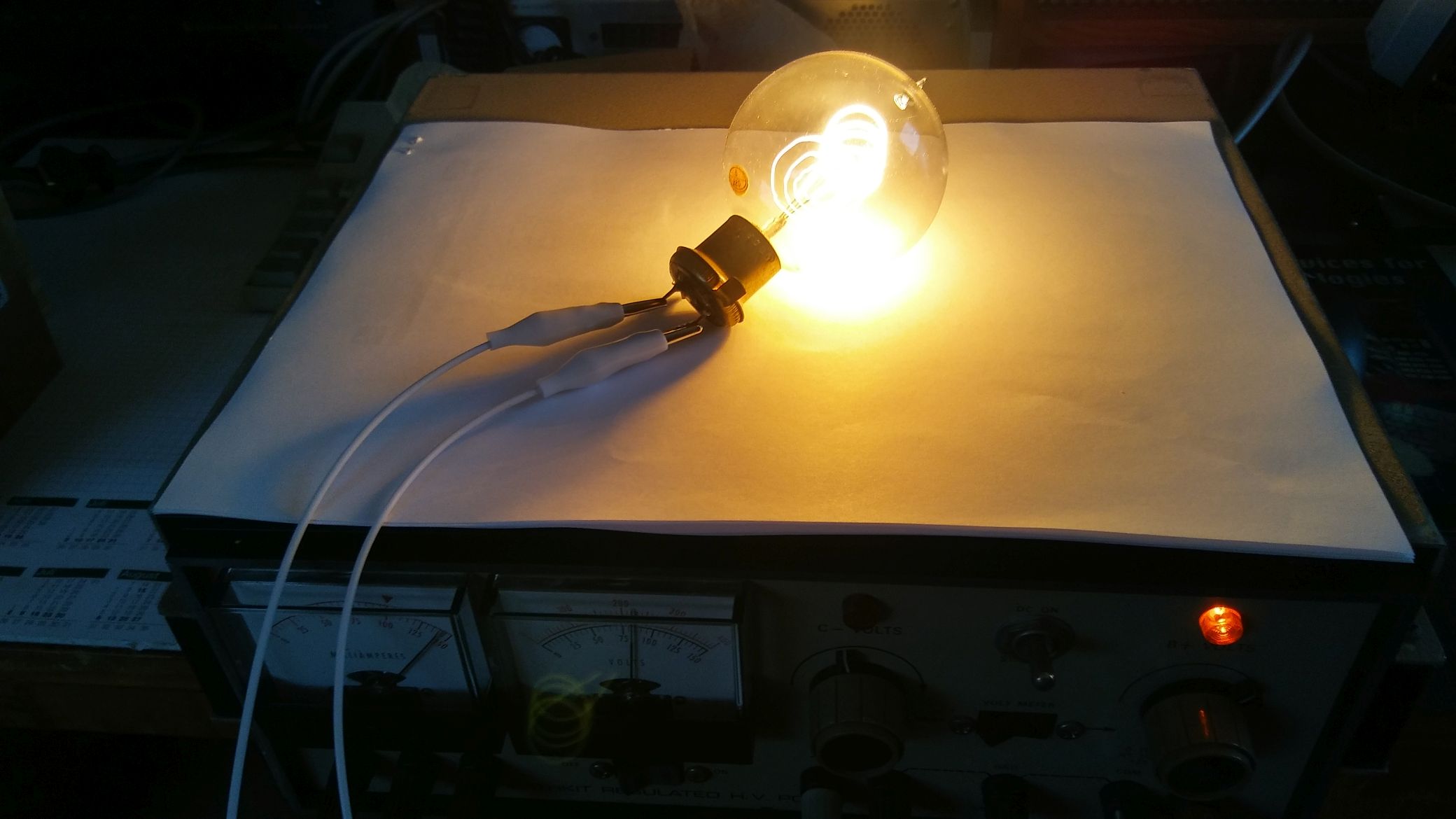in dem Raum, in dem sich meine 1920/30'er Radios befinden, habe ich nicht ganz stilgerecht chinesische 40W Retrolampen eingesetzt. Im Vergleich dazu zeigt die klare Paz & Silva Kohlenfadenlampe aus Frankreich 1904 in etwa die gleiche Farbtemperatur. Man konnte mit Kohlefadenlampen aber durchaus auch nahezu Weisslicht erzeugen, wie die matte und im Durchmesser etwas kleinere Kohlefadenlampe zeigt. Vielleicht ist es aber auch schon eine "Paz&Silva Tantale" - keine Ahnung, gibt es Experten? Wahrscheinlich nicht nach 114 Jahren!
