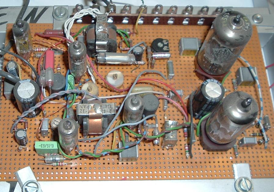 Anbei ein Bild von einem Stereodecoder auf Lochraster mit Subminiaturröhren. Pentoden, Gegentaktmischer für das L-R Signal multiplikativ mit 38KHz auf den Bremsgittern (Modell 1995).