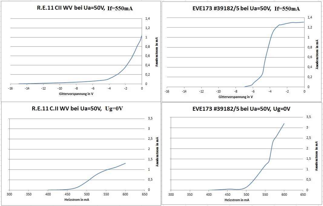 vielen Dank für die Informationen. Mein Fragezeichen hinter dem Wort "Fortschritt" war natürlich provokativ und überflüssig. Was den Unterschied zwischen der RE11 und der EVE173 anbetrifft, war ich bislang eher der Meinung, dass er klein oder nicht vorhanden ist. Wahrscheinlich müsste man mehrere Röhren untersuchen, was schwierig ist. Allerdings weist der Hinweis auf eine grosse Endlautstärke darauf hin, dass sie auch als Endröhre in frühen Systemen eingesetzt wurde.