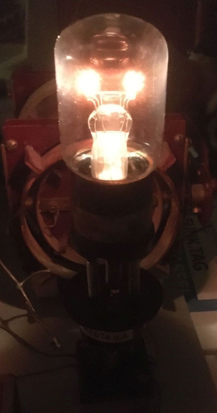 Wie man sieht, ist das System schräg eingebaut worden. Meine Vermutung ist, dass der Heizfaden erneuert wurde, und die Röhre danach nicht mehr in den Einsatz kam, die Emission ist ausgesprochen hoch.