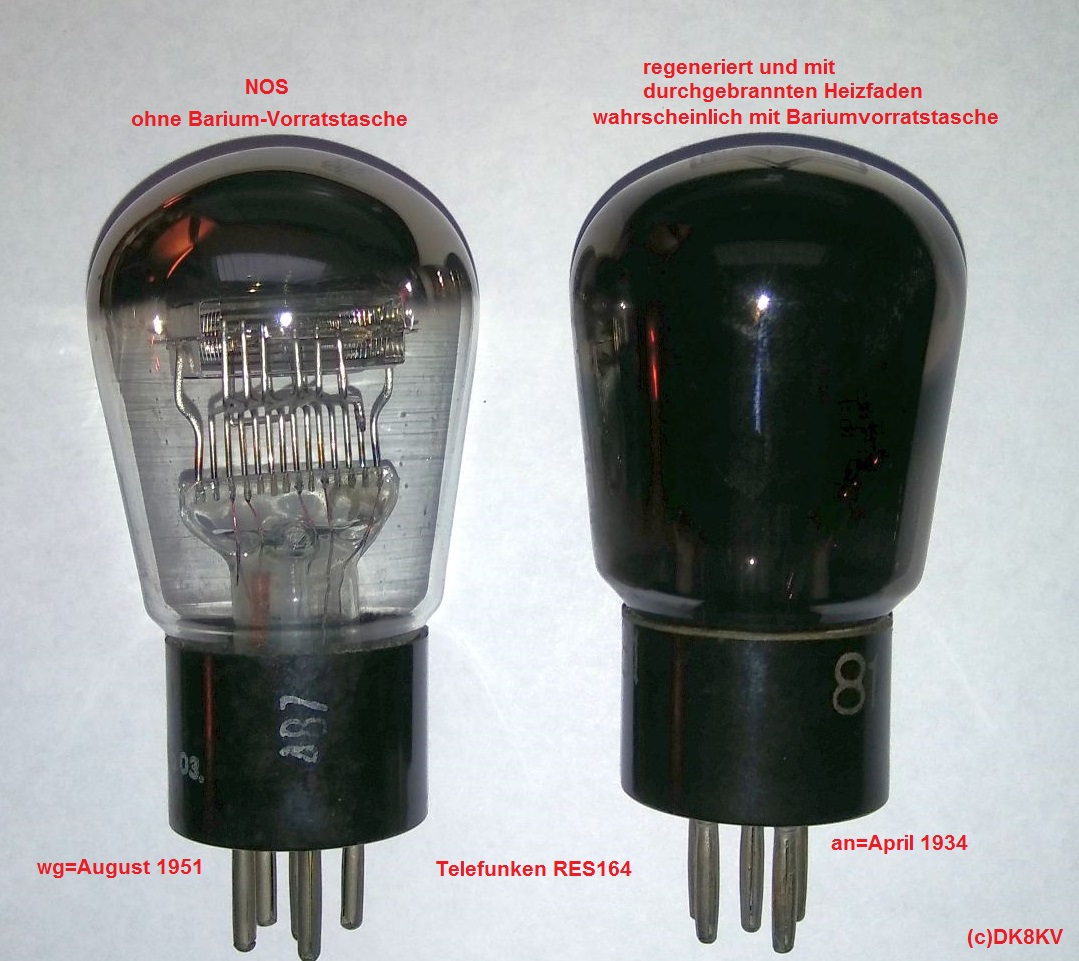 der RES164 als erster Leistungspentode sollte man in der Tat einen gewissen Respekt zollen. Bis zum Kriegsende wurden bei Telefunken 4.357.707 Stück produziert. Nach dem Krieg bis einschliesslich 1954 immerhin noch 481.076 Stück. Im Vergleich dazu lag die RES164d mit einer Gesamtsumme von 397.958 Stück deutlich niedriger.