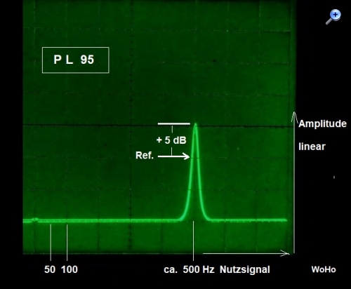 Ausgangspunkt der Messreihe ist eine neuwertige RES164, welche mit einem bestimmten Nutzsignal (ca. 500Hz) angesteuert wird. Die Gleichstromeinstellung ist: Ub = 220V Rg2 = 100k mit 0,1µF nach 0V. In der Anodenleitung liegt ein AÜ mit Z ~ 10kOhm Das bleibt unverändert. Mit Absicht habe ich als Maßstab für die Amplituden die lineare Darstellung gewählt, weil bei der log. Darstellung zu viele (für die Erklärung) verwirrende Signale sichtbar werden! Mit einem geeichten Abschwächer am Ausgang kann ich die dB-Werte ermitteln und eintragen.