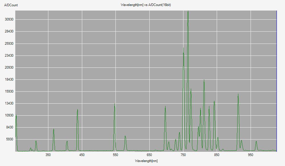 diese Lampen werden hauptsächlich für spektrometrische Anwendungen verwendet. Deuteriumlampen haben stabile, schmalbandige, spektrale Spektren mit hohen Intensitäten im Bereich (tiefsten) UV bis in den IR-Bereich. Im Anhang ist ein Bild einer Messung einer Deuteriumlampe. Leider liegt die untere Grenze bei diesem Spektrometer bei ca. 250nm, sonst würde man noch weitere Linien im UV-Bereich sehen.