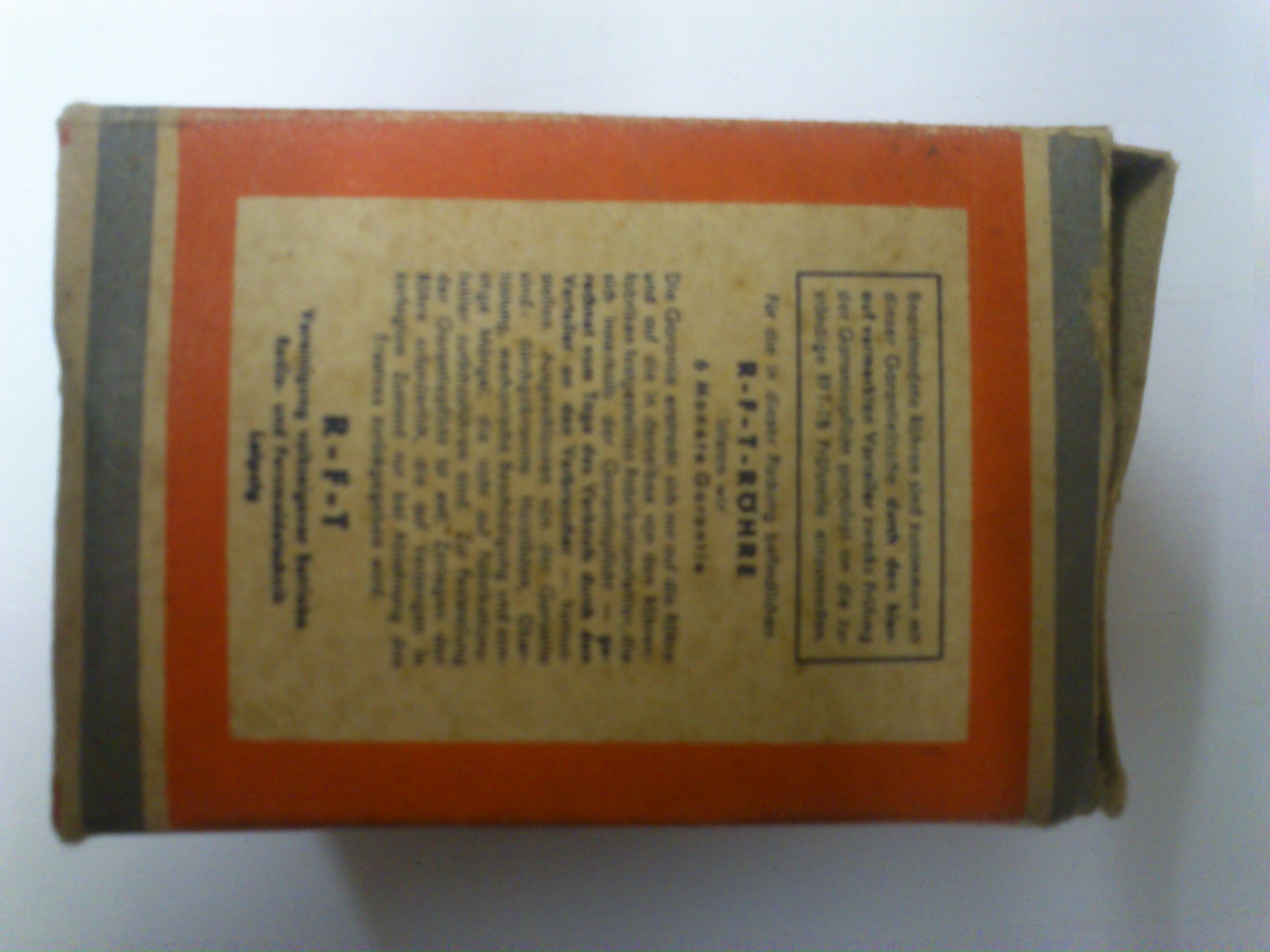 Hallo Rainer, hab noch ein paar Kartons gefunden Es sind pro Karton mindestens 3 Bilder, von oben, wegen Röhrenname und wenn die Seiten unterschiedlich waren, dann von jeder Seite ein Foto. Die RFT Röhre hab ich aufm Flohmarkt gefunden. Dachte mir, die nehm ich mit, aber unten der Plastenippel ist leider weg. Hoffe die Kartons sind okay so :) Hier Teil 1 liebe Grüße der Glühwurm