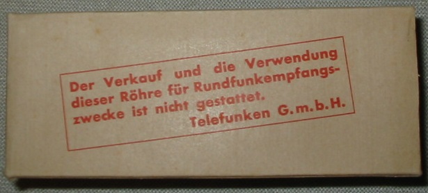 Die Verpackung und der Kauf aus Finnland der RENS1264 lässt auf einen Export nach dorthin schließen. Finnland hatte ja während des 2 WK gute Beziehungen zu Deutschland. Die finnische Luftwaffe hatte deutsche Flugzeuge, die Flugabwehr war mit deutschen Radar oder Funkmessgeräten ausgestattet. Bis in die 50er wurden diese Geräte Stichwort, "Freya, Würzburg" in Finnland verwendet. Die Verpackung lässt darauf schließen das diese Röhren nicht als Rundfunkröhren verwendet werden sollten, sondern für andere Zwecke, hier den Export bestimmt waren.