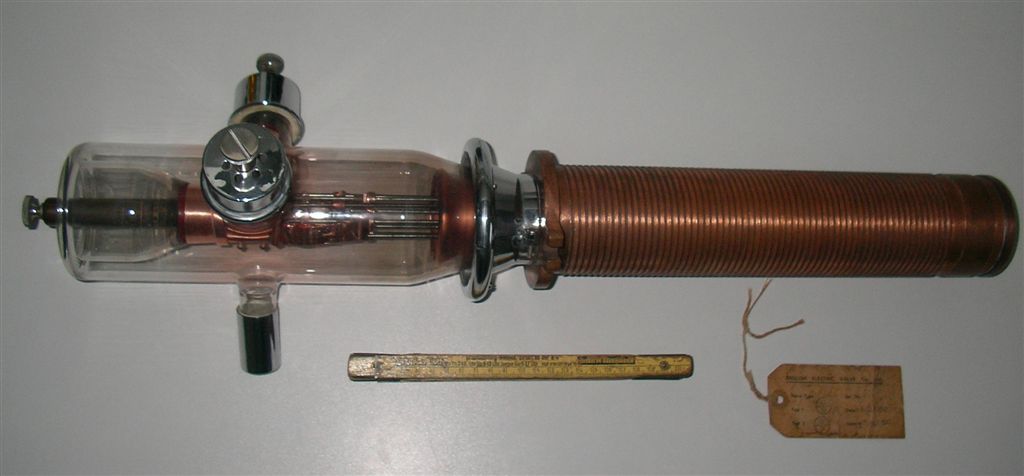 Die Röhre erscheint mir als sehr interessante und wahrscheinlich seltene, noch erhaltene Konstruktion. Vom Aufbau her vermute ich ebenfalls, dass sie in Richtung RADAR-Technik einzuordnen ist. Von den Abmessungen her dürfte sie für eine recht beträchtliche Leistung bis in einen hohen Kilowatt-Bereich bei Impuls-Betrieb konzipiert sein.