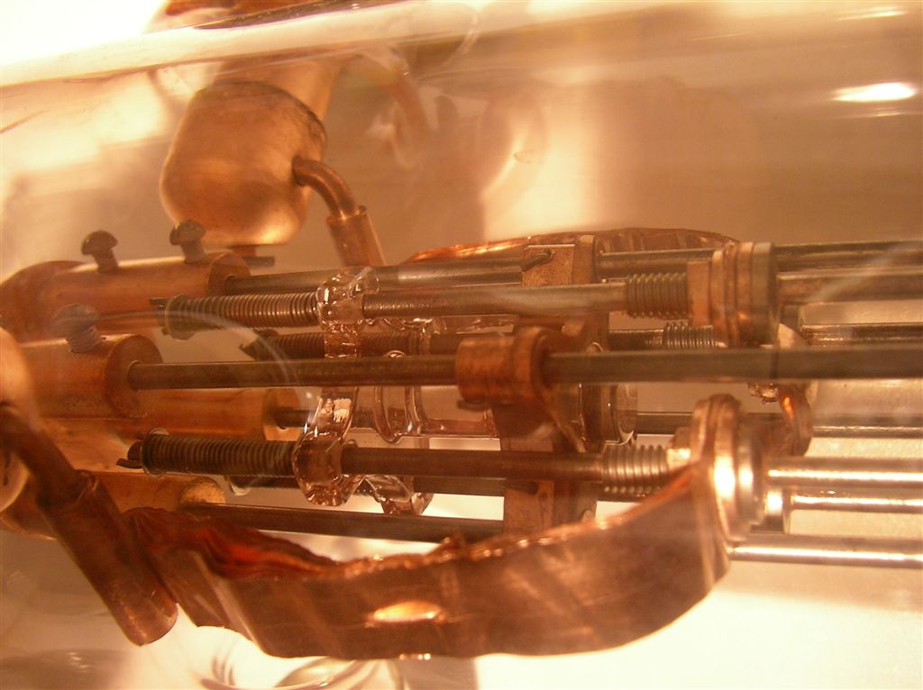 Aber auch Magnetrons gibt es was Deine Röhre letztendlich ist kann ich nur vage vermuten auch wenn es Dir nicht weiter hilft.Diese Klystrons wurden als Senderöhren für sehr hohe Frequen ab 9000Mhz-73Ghz damals in den frühen Radaranfängen verwendet.